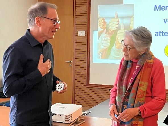 Pour remercier M BOISSONNADE de sa brillante prestation, Marie-Christine PLESSIER, présidente de la section Gironde, lui a remis la médaille souvenir de l’ANMONM.